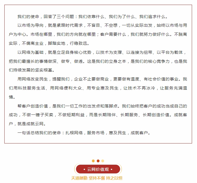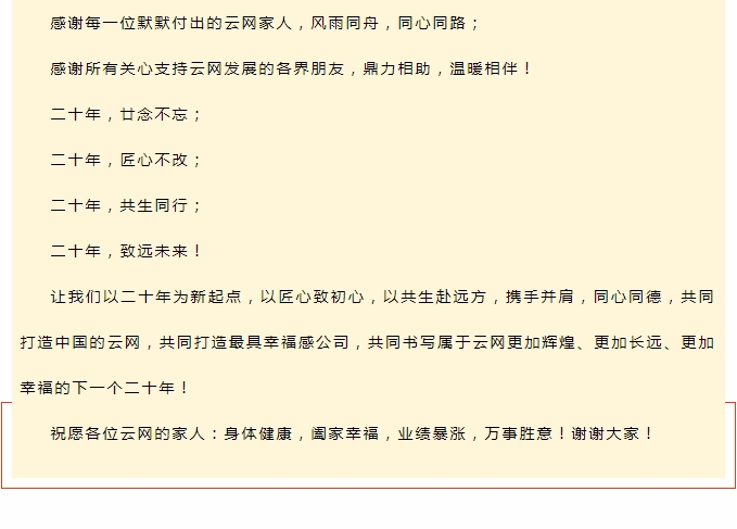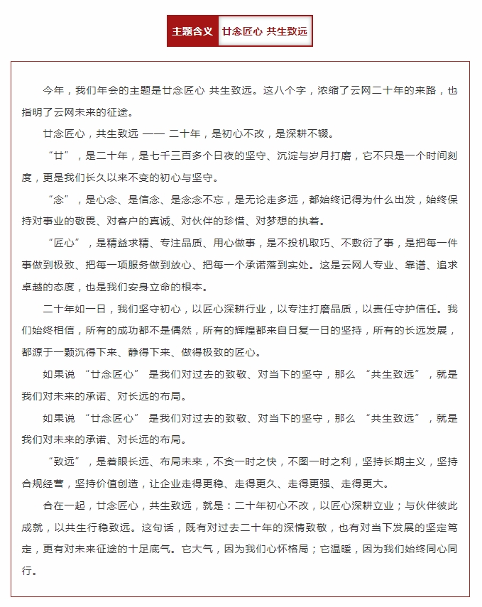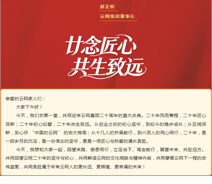 廿念匠心 共生致远——云网集团董事长20周年致辞