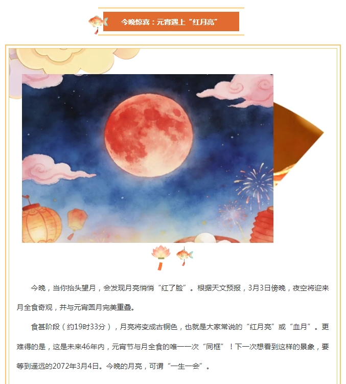46年一遇!今晚元宵“红月亮”